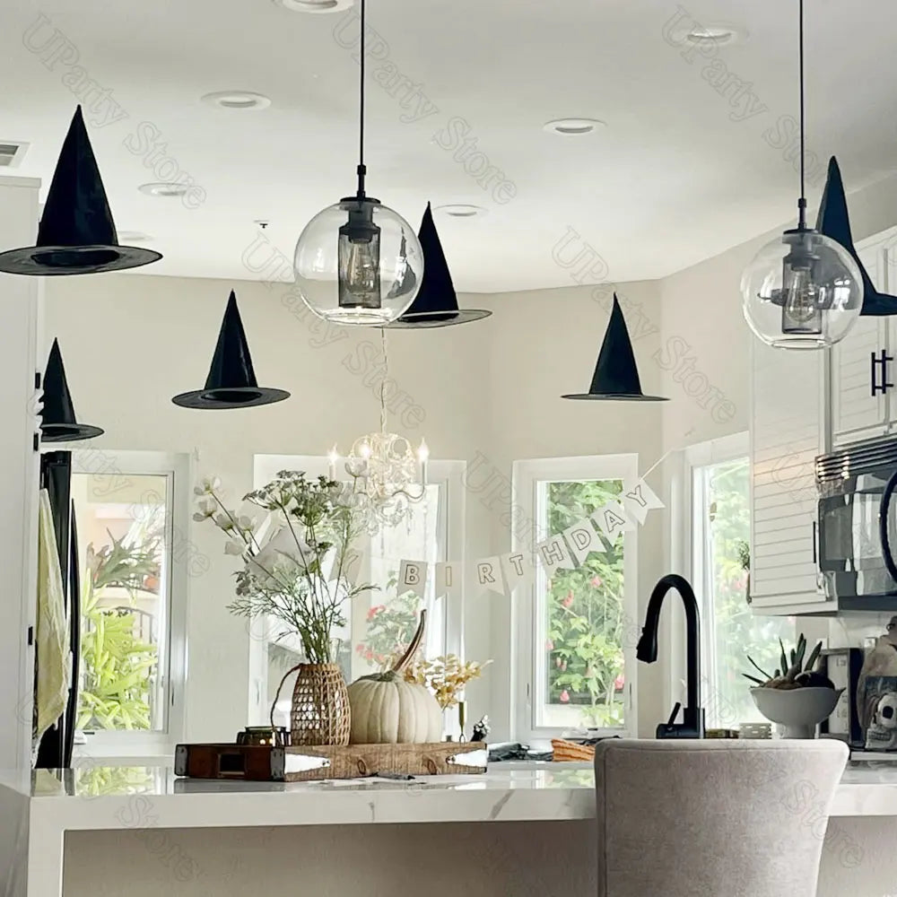 6/12Pcs Chapeaux de sorcières noires pour Halloween, pièces, avec corde